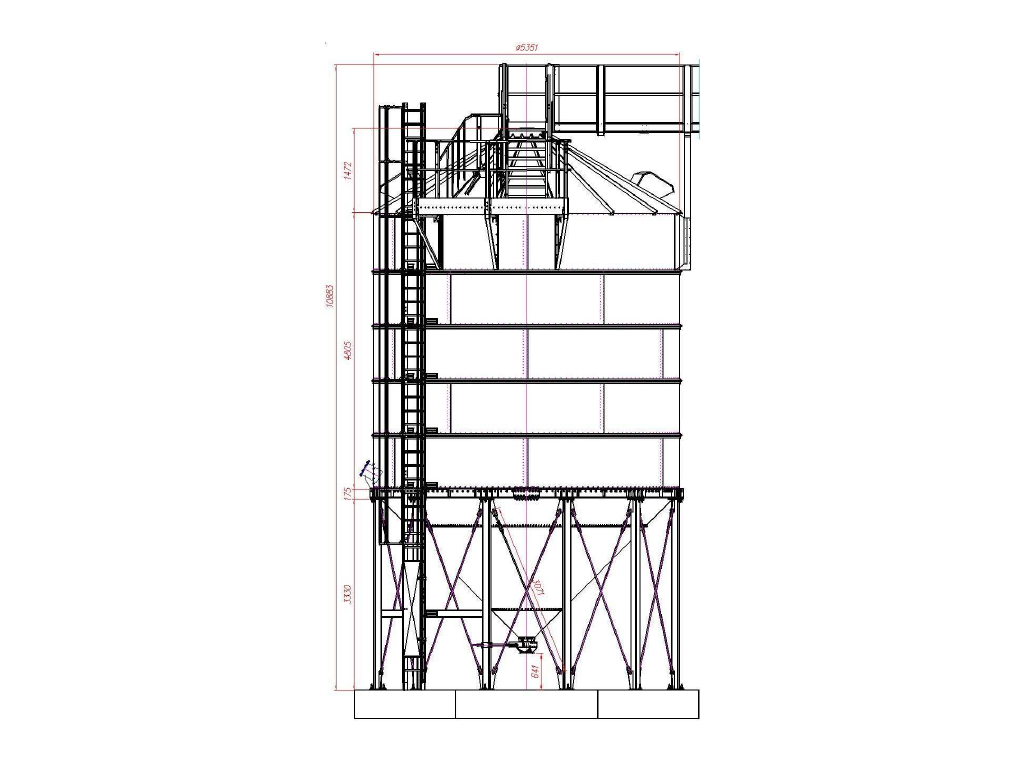 - centrální vpád do sila o průměru 200 mm umístěný ve střeše sila