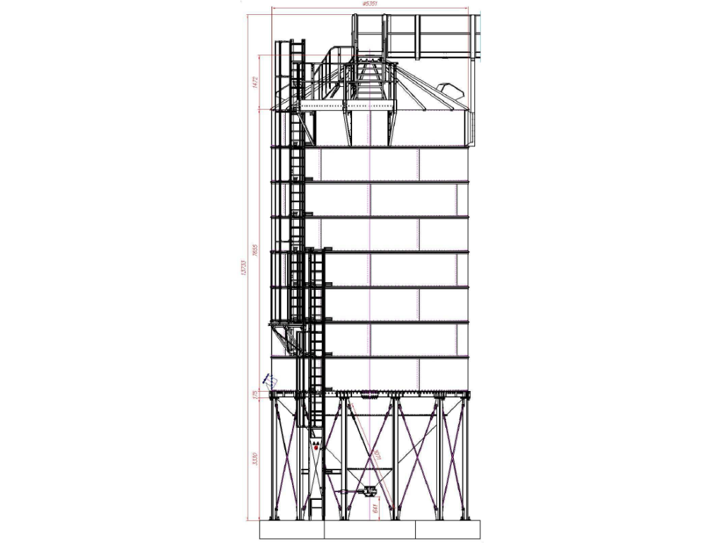 - centrální vpád do sila o průměru 200 mm umístěný ve střeše sila