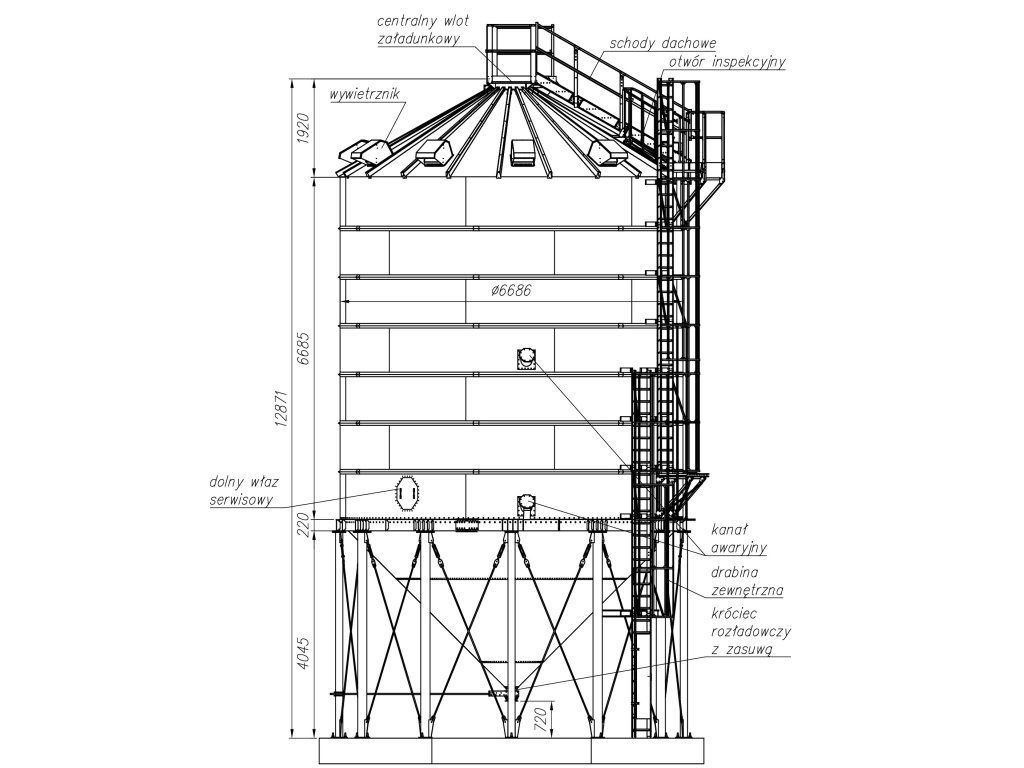 - centrální vpád do sila o průměru 200 mm umístěný ve střeše sila